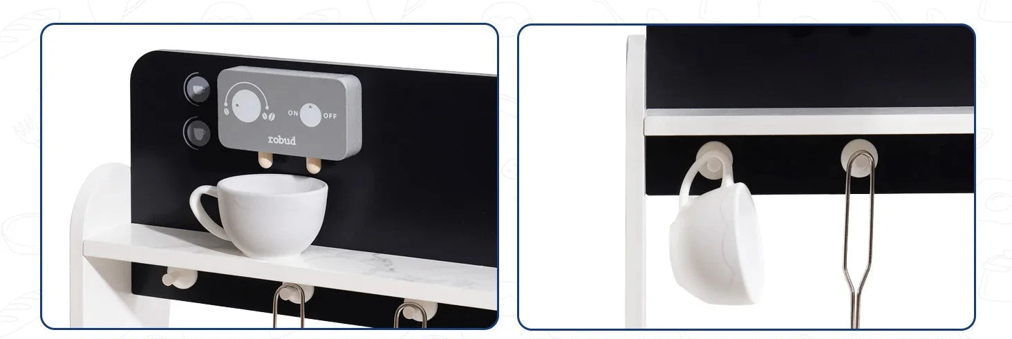 Libérez l'imagination de votre enfant avec cette cuisine jouet en bois, dotée d'un mélange chic d'accents noirs, dorés et marbrés.Ce design élégant apporte une touche moderne à n'importe quelle salle de jeux ou chambre, offrant aux petits chefs un espace élégant pour cuisiner, jouer et explorer.