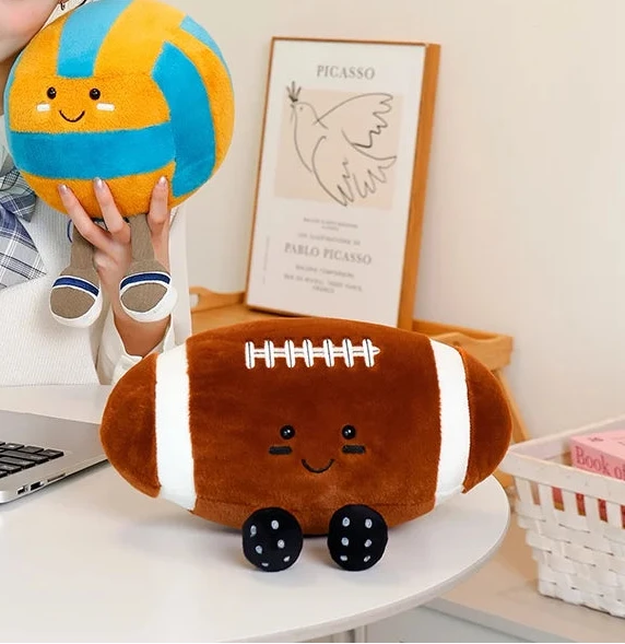 Peluche ballon de sport aux formes douces et rassurantes, parfaite pour accompagner votre enfant au quotidien.